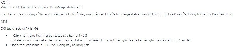 Liên quan đến việc case chạy ra bản ghi merge_status = 2: Việc sửa partnerId để ra được case lỗi là không đúng. Vì khi convert hoặc rating thông tin partnerId đã chính xác rồi mới có file đầu ra để import được dữ liệu. Case này thì chỉ có trường hợp cấu hình sai bảng cước dẫn dến ko rerate được thì bản ghi đó vẫn có merge_status = 2 và sau khi có lịch chạy pdp sẽ xử lý như cmt 1