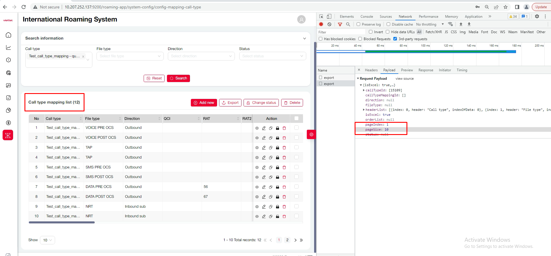 - Tìm kiếm theo trường call type giá trị: Test_call_type_mapping...