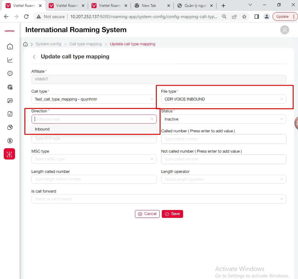[Cấu hình hệ thống][Cấu hình map calltype] - Add/Update/Duplicate- Lỗi không clear giá trị Direction khi đổi File type
