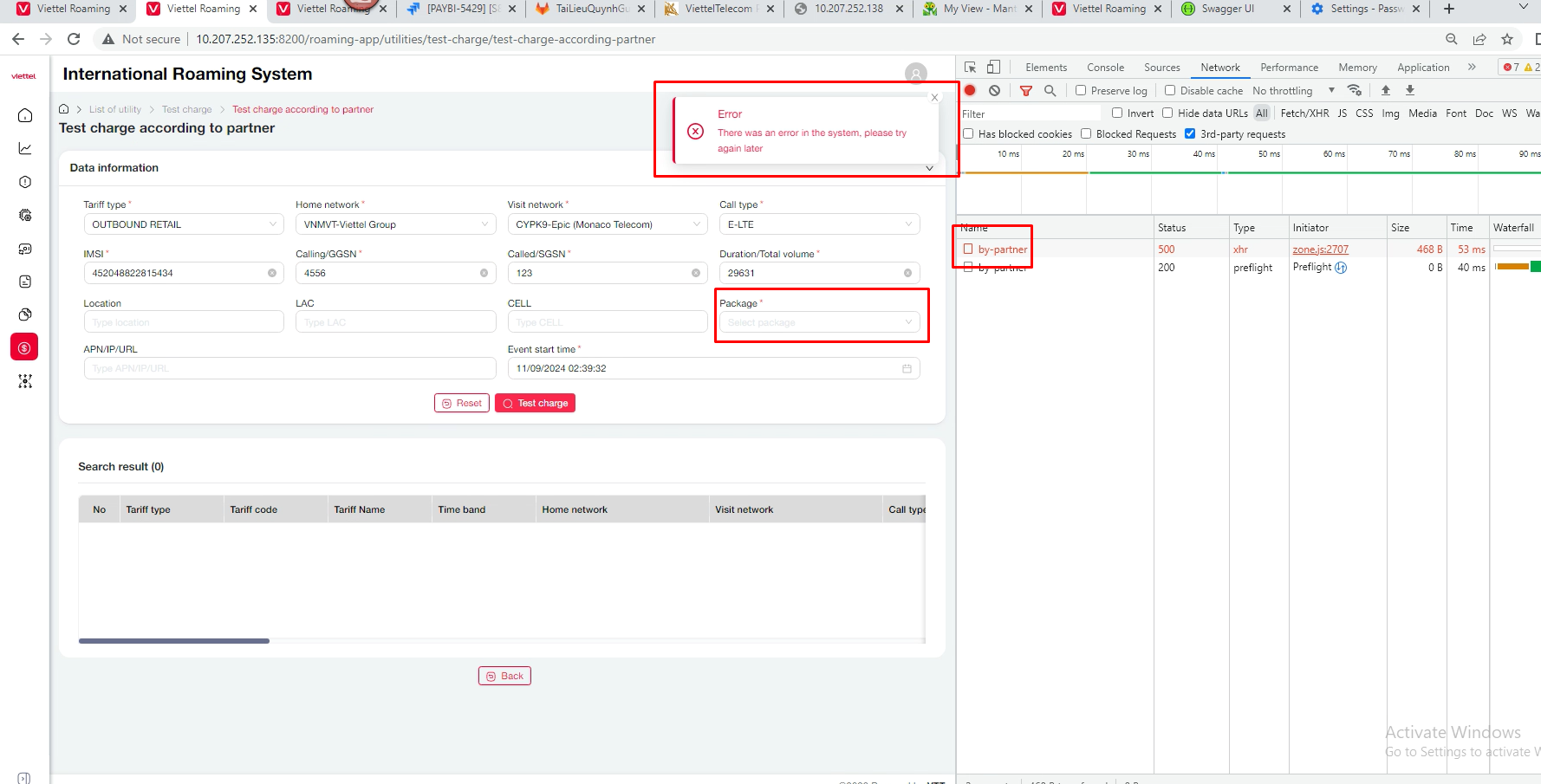 [Tiện ích][Giao diện tính thử cước theo đối tác ] Lỗi 500 test charge khi không truyền package