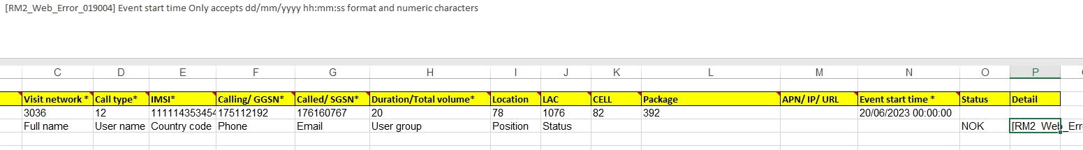 Hiện trạng: even start time trong file import đúng định dạng nhưng file kết quả đang trả về thông báo sai định dạng