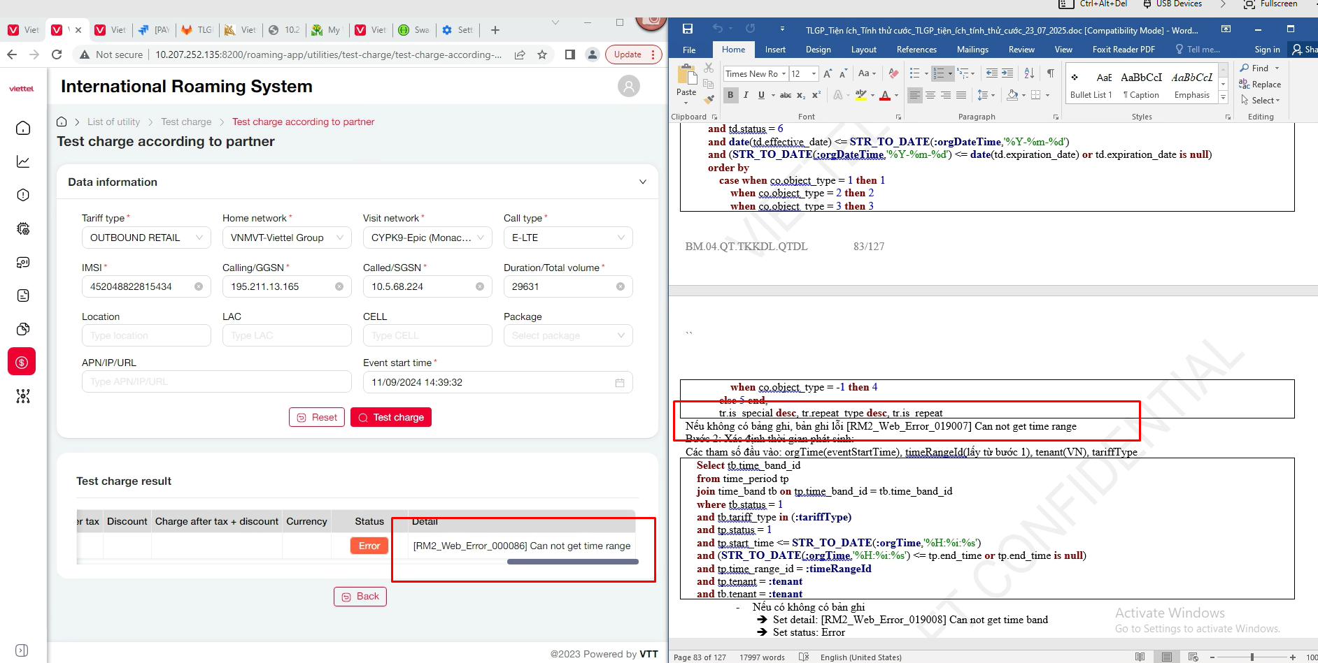 closed[Tiện ích][Tiến trình Tính thử cước theo đối tác] Lỗi mã lỗi không xác định được ngày phát sinh sai so với tlgp