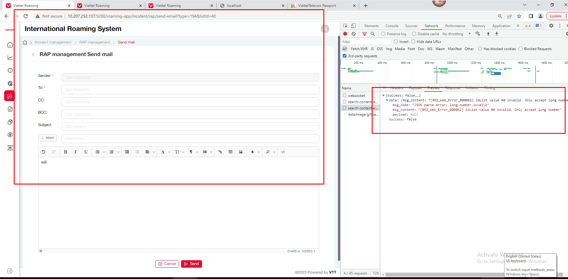 - Vào màn seand mail -> f5 lại