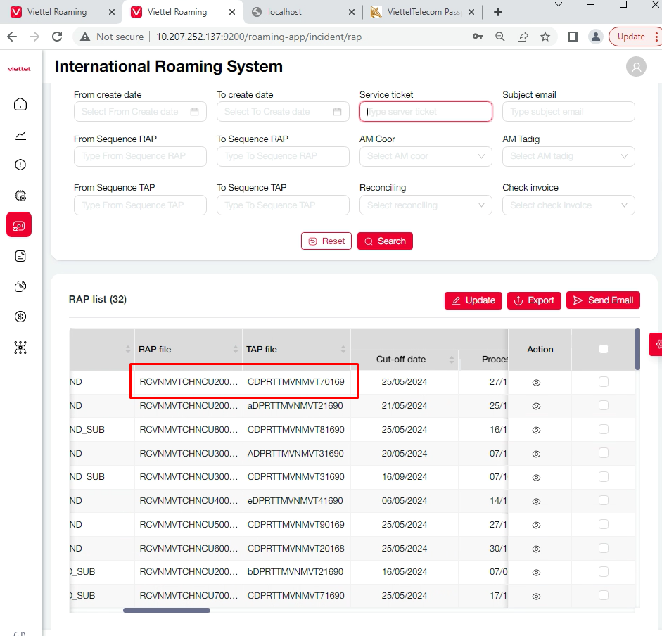 -> KQTT: Dữ liệu parameter TAP file đang gen sai