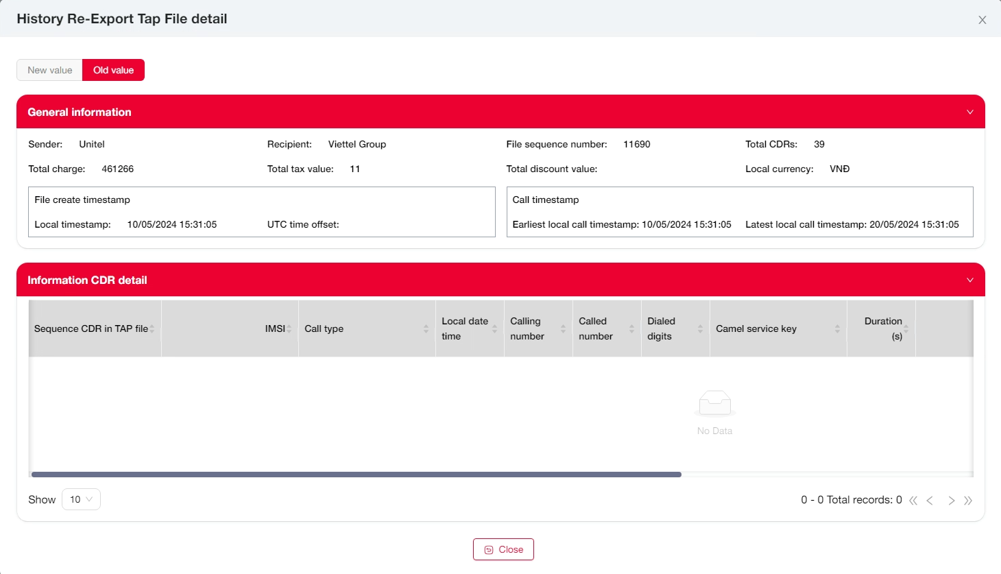 open[Re-export tap file] Lỗi view detail old value tại tab history không trùng dữ liệu với bản ghii gốc tại tab re export tap file