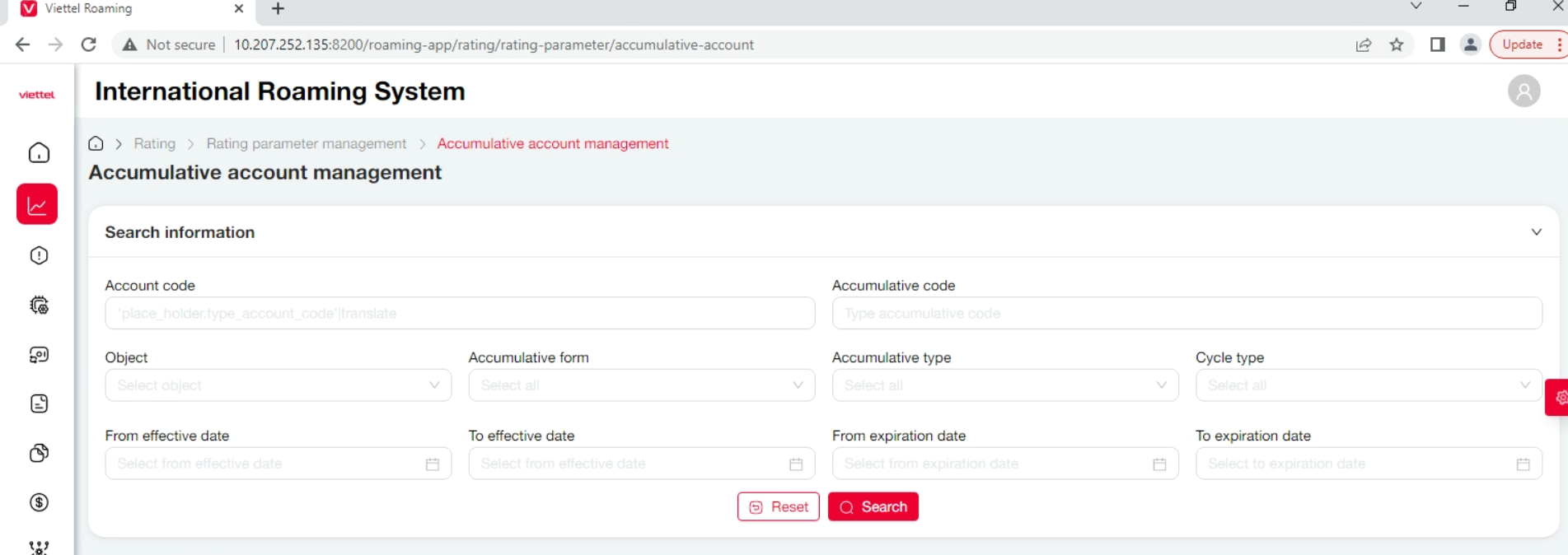Place holder của account code trong màn accumulative account management đang hiển thị sai