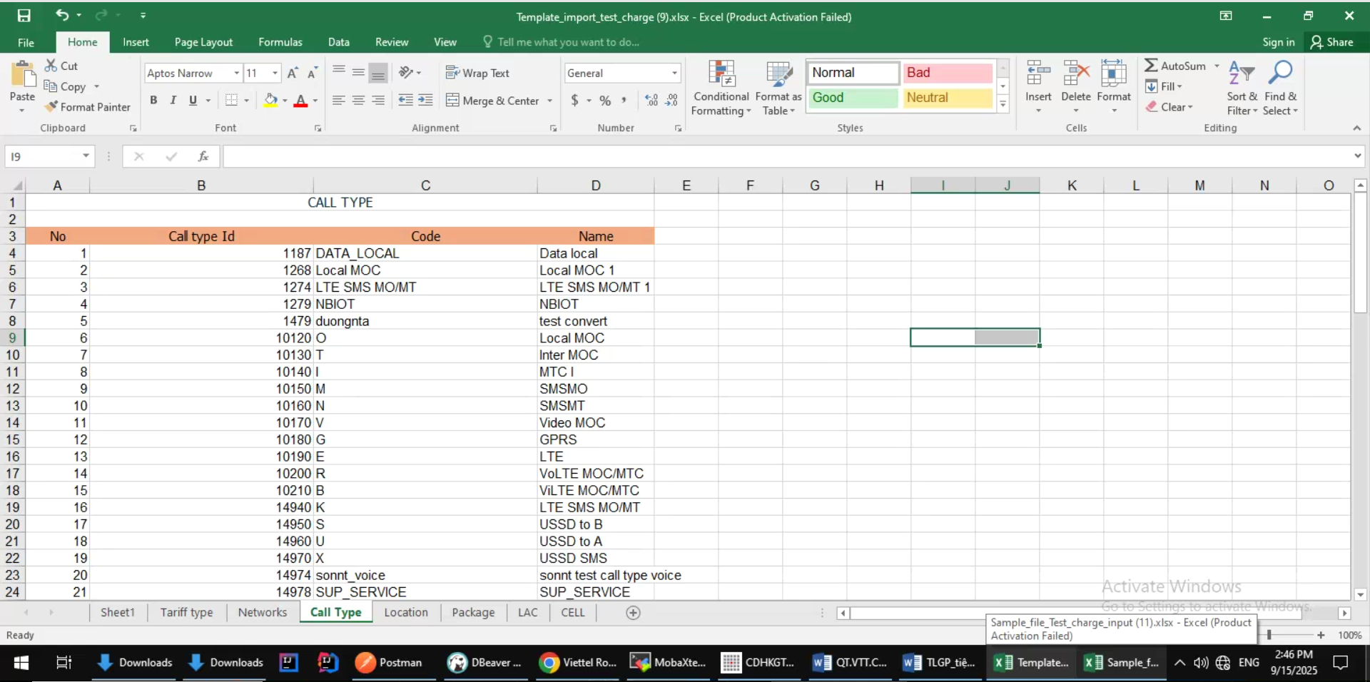 Trong File result chỉ hiển thị dữ liệu ở sheet1 và tariff typ, các sheet còn lại không có dữ liệu như trong file template.