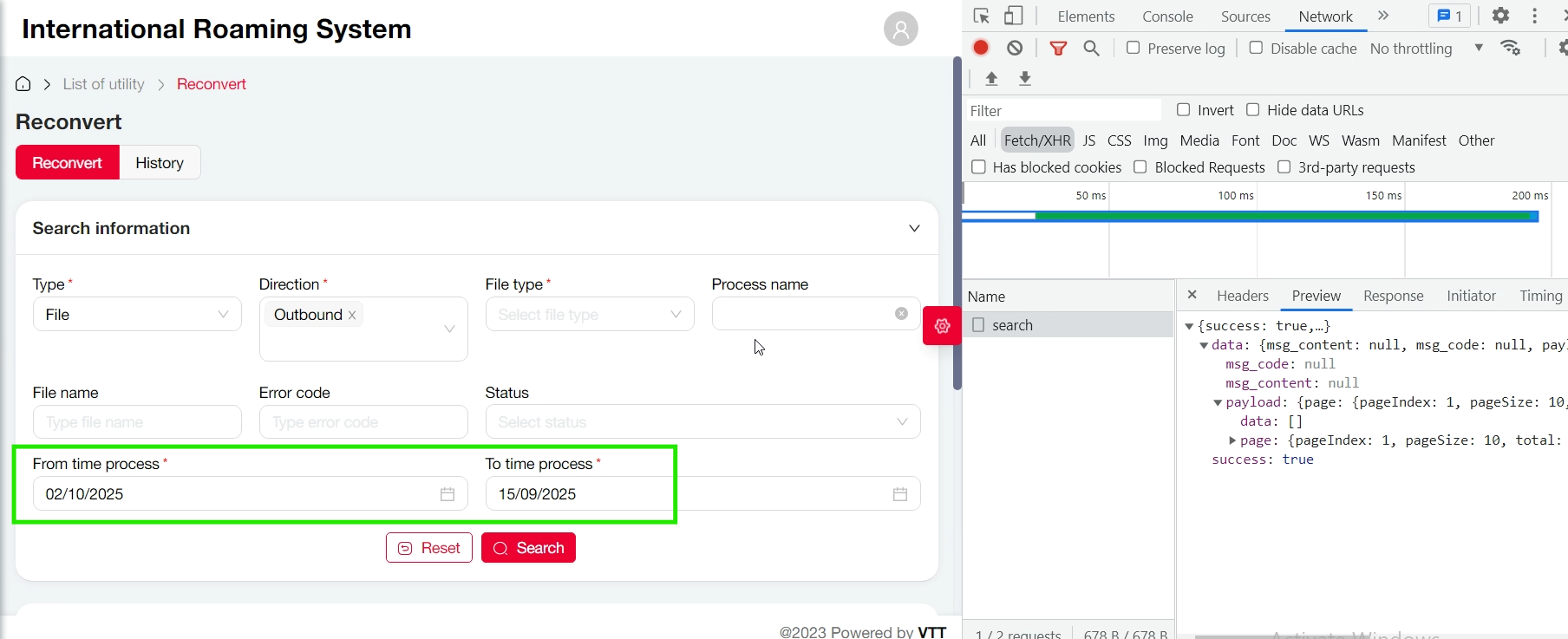 [Reconvert] Chưa verify điều kiện khi search: Bỏ trống trường * và điền From time process < To time process nhấn Search nhưng không báo lỗi