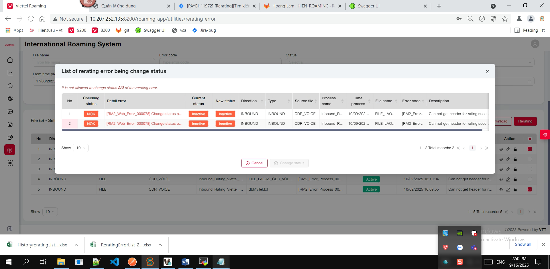 Kết quả: Những bản ghi đã được update ko thể change status được(trong khi TLNV ko yêu cầu), bên ngoài danh sách là active nhưng trong màn confirm change status lại hiện inactive