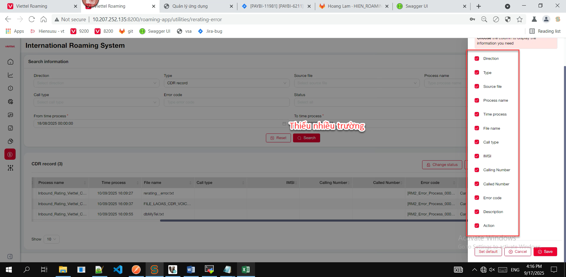 open[Tiện ích][Rerating error - CDR][Lỗi FE] Tab rerating error, bảng thiếu nhiều trường khi chọn Type = CDR