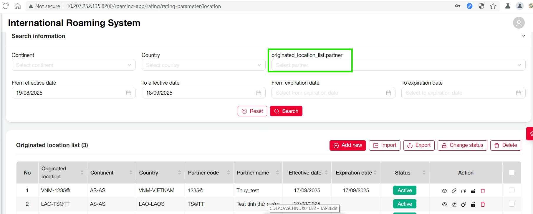 [Thông luồng][Originated] tab Search: sai tên trường partner