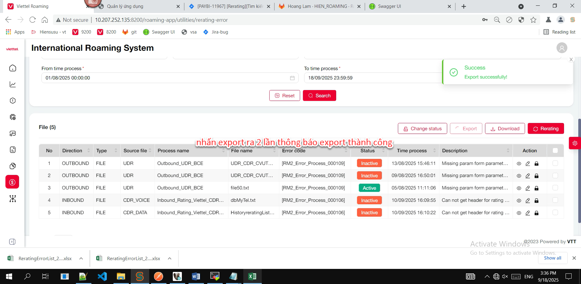- Subject changed from [Tiện ích][Rerating error]Cả màn rerating error và history, nhấn export nhảy 2 thông báo export thành công to [Tiện ích][Rerating error][BUG FE] Cả màn rerating error và history, nhấn export nhảy 2 thông báo export thành công
