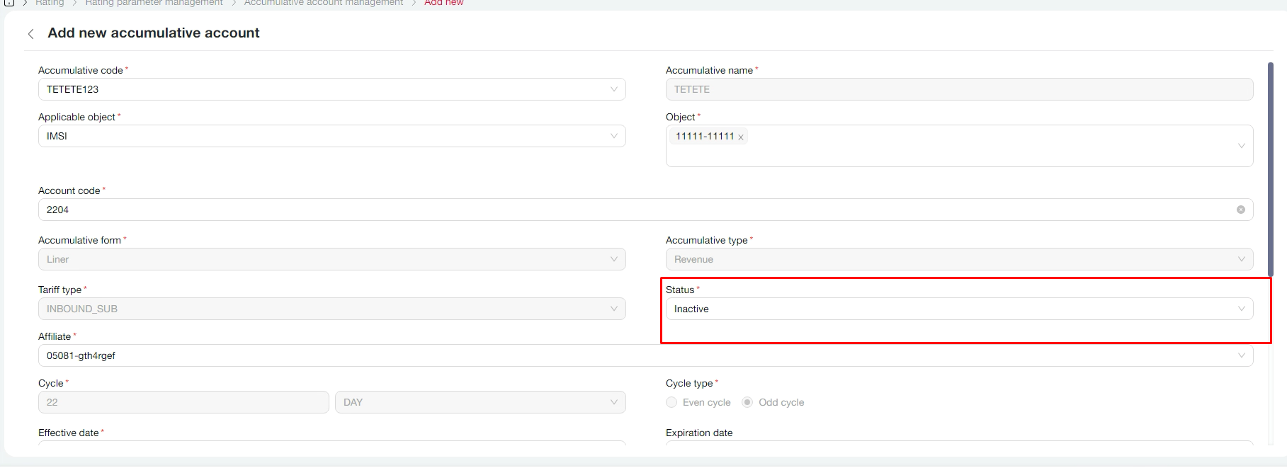 open[Thông luồng][accumulative_account] lỗi thêm mới status không nhận giá trị truyền vào