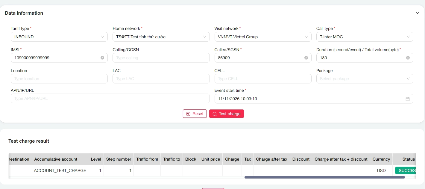 Hiện trạng: với thông tin đầu vào như ảnh, khi tính cước theo partner không tả kết quả, tính theo file thì trả kết qảu bằng 0, khi nhập durtion vượt ngưỡng bảng cước thì không báo lỗi