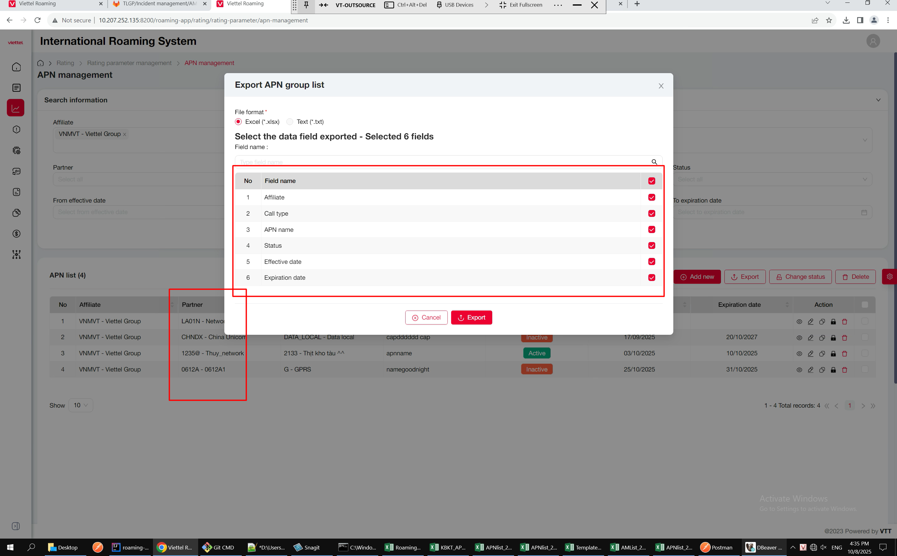 - Copied from Bug #2601: [APN management][Export] Thiếu trường Partner trong danh sách chọn Export added