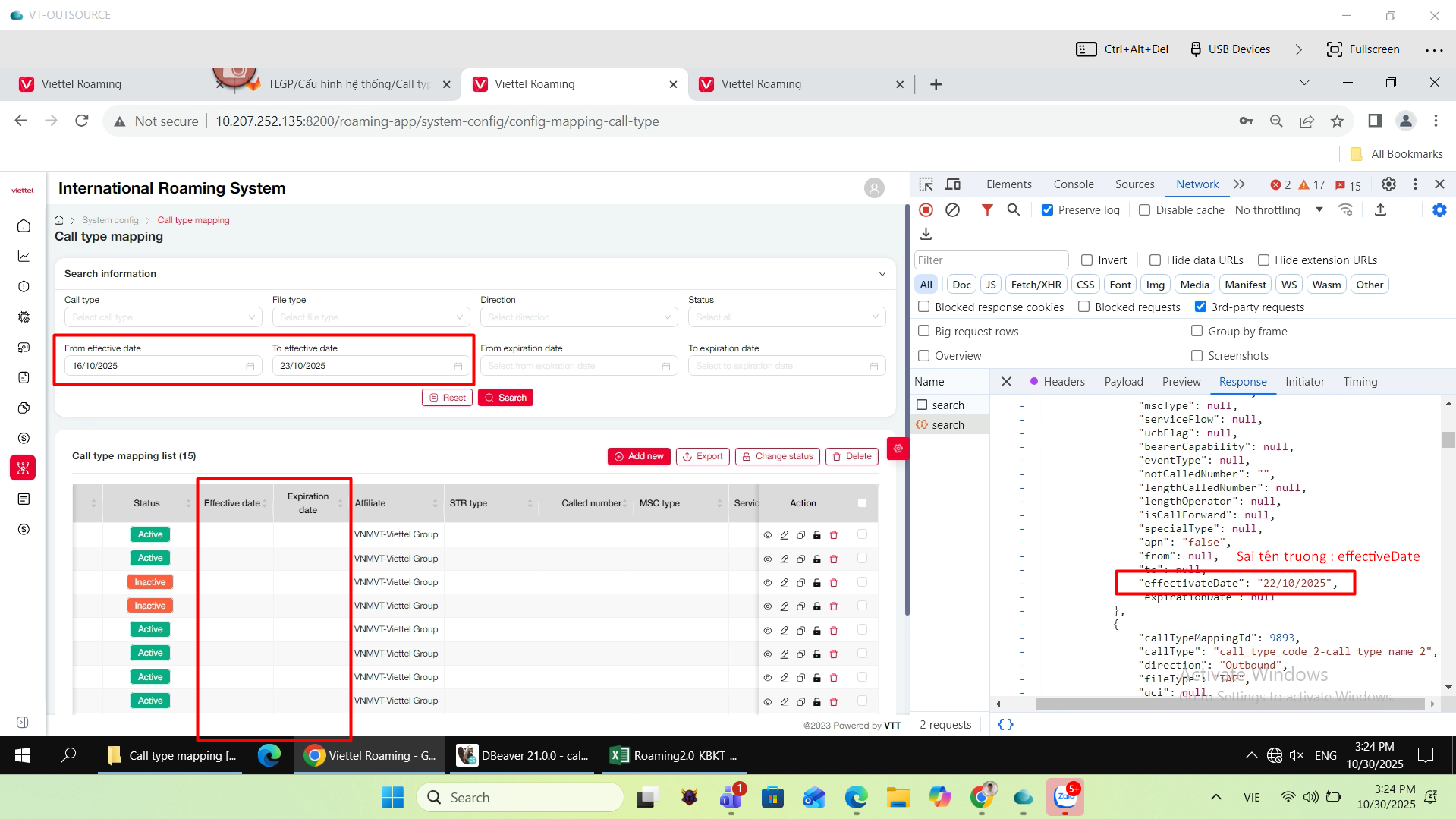 [Cấu hình hệ thống][Call type mapping] bug sai tên trường