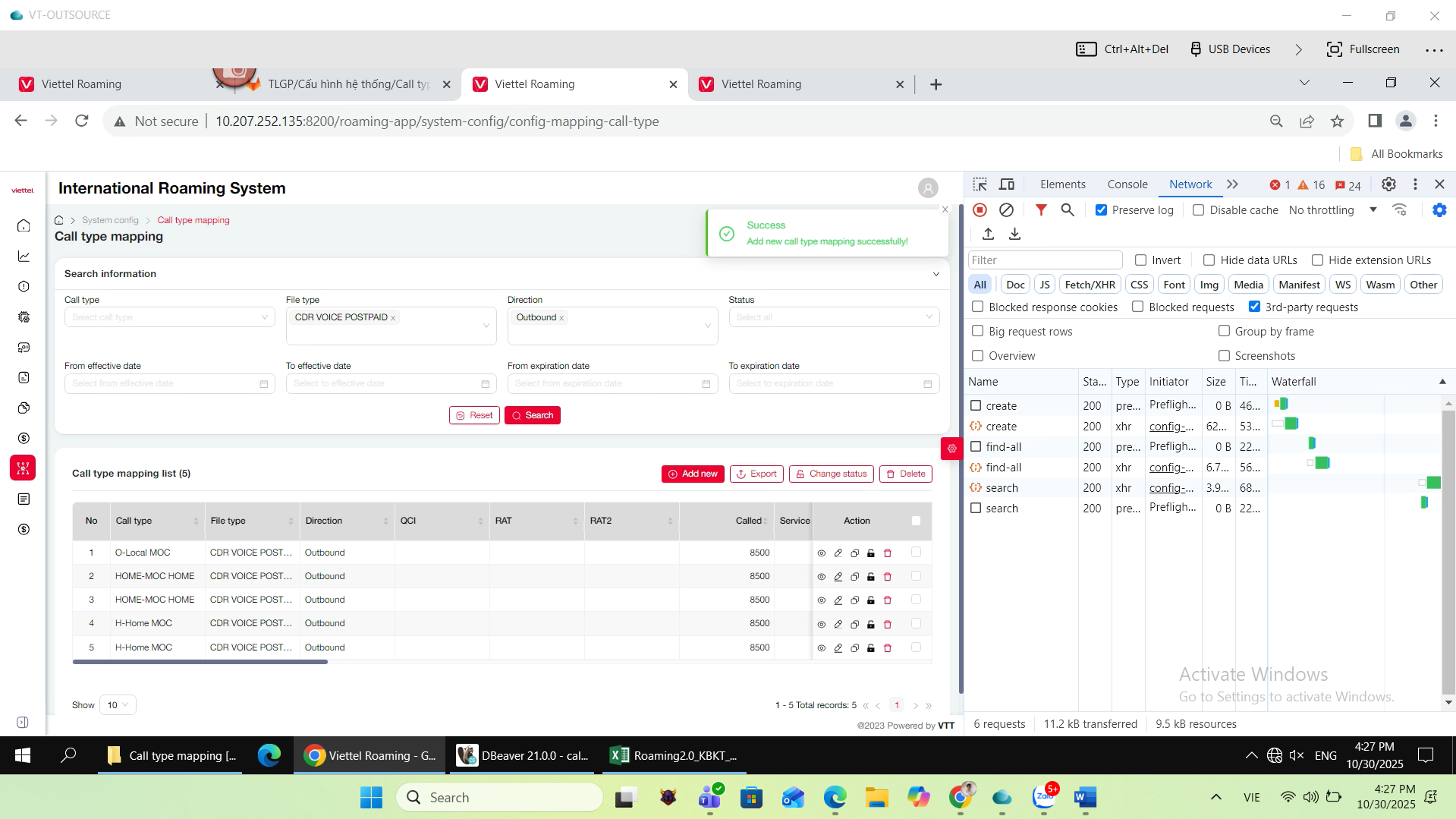 open[Cấu hình hệ thống][Call type mapping] add new : outbound - CDR VOICE POSTPAID: bug trùng bản ghi trong DB vẫn lưu được