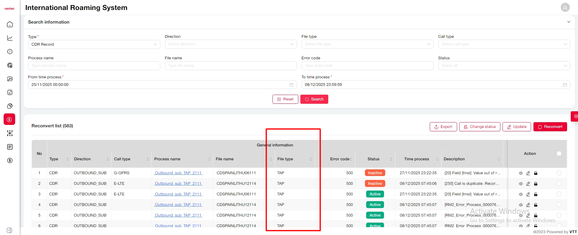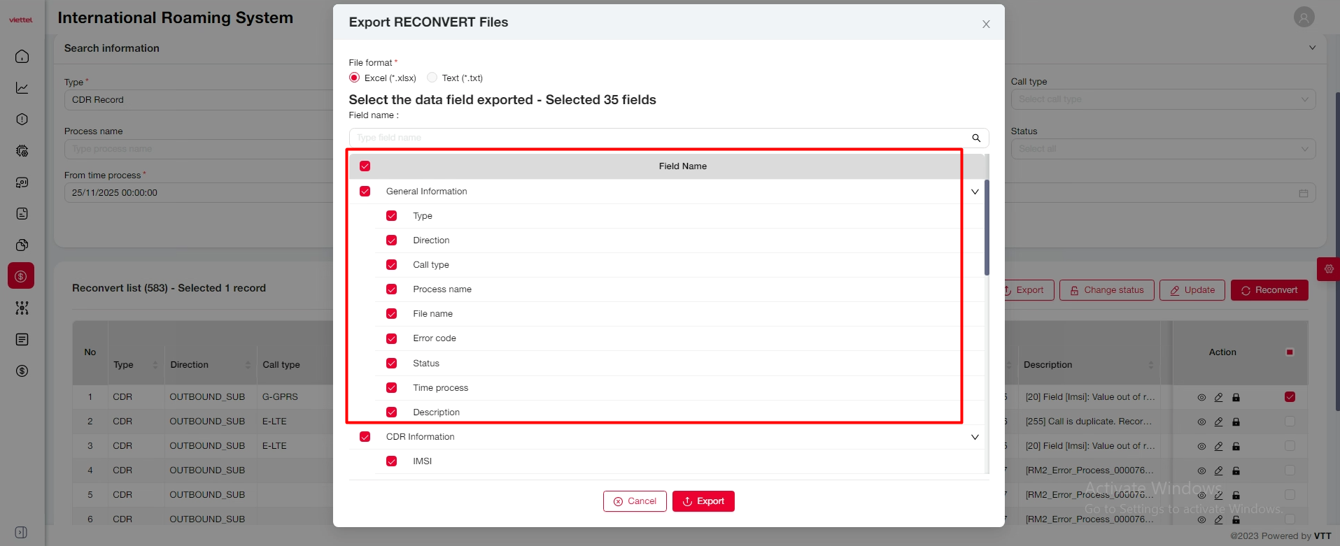 [ReConvert][CDR] Thiếu trường File type trong danh sách chọn Export
