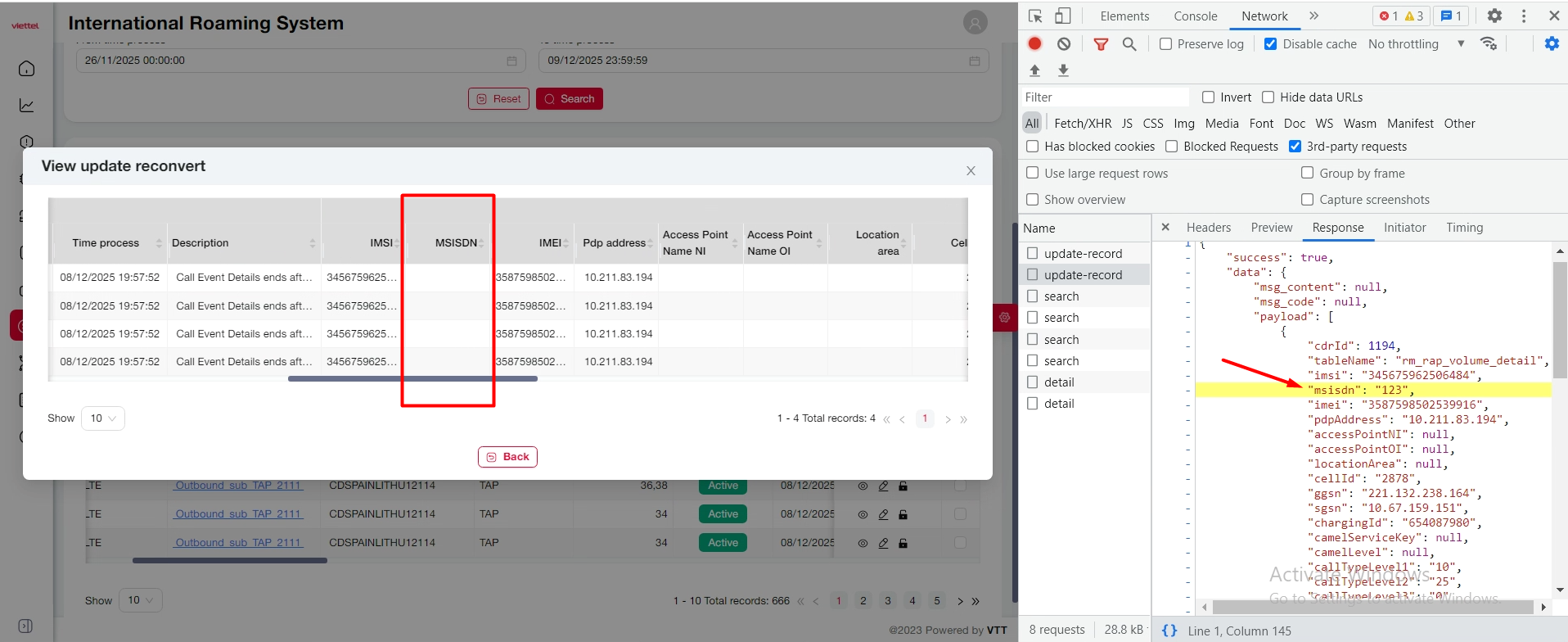 closed[ReConvert][CDR] Update - Trường MSISDN không hiển thị dữ liệu khi cập nhật thành công
