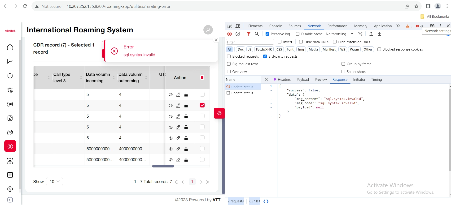[Tiện ích] [Re-Rating Erro - CDR] Bug sql.syntax.invalid chức năng change status nhiều bản ghi