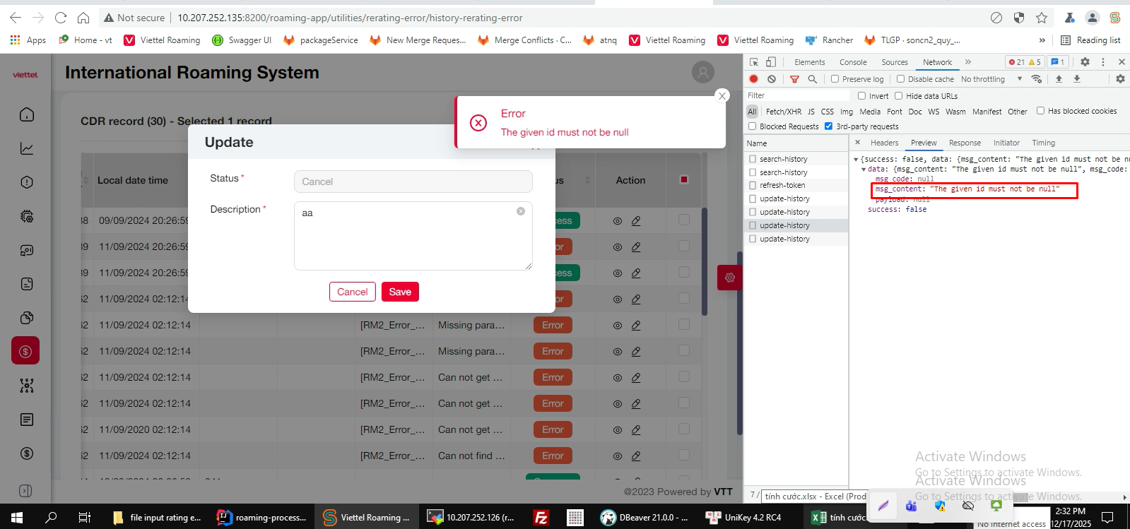 Copied from Bug #2855: [Tiện ích] [Re-Rating Error - CDR] [History] [ Service type = Data/ Voice ] Bug trả lỗi màn view detailClosedĐỗ Huy Linh12/17/2025